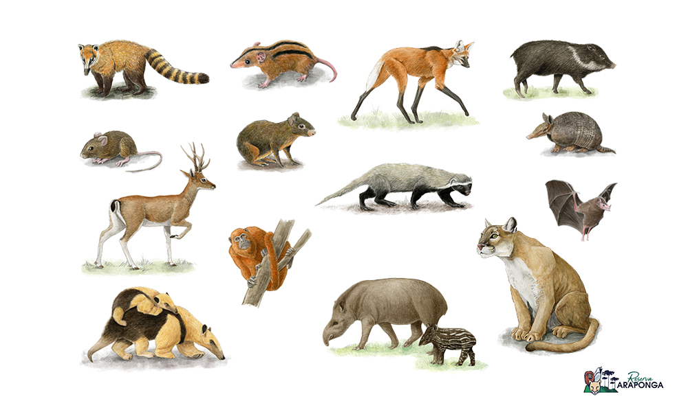 Ilustrações em lápis de cor e aquarela para livro e pôster da Reserva Araponga